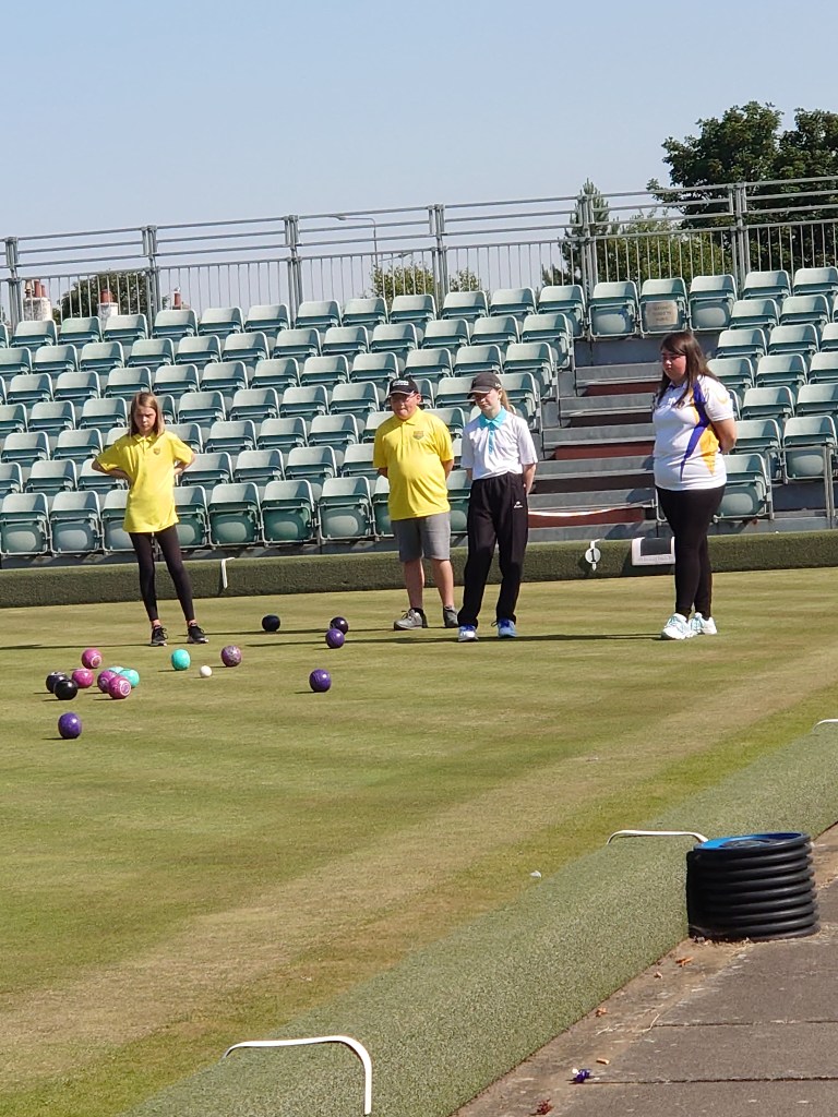 What a fantastic experience for Hedgehogs Luke, Lily and Nicholas at the National SYBA Finals! The whole day, from registration, putting stickers on bowls, matches, the crowds, the lunch pass (which they were delighted about!), moving between greens, and members of the Howie coming to cheer them on was superb.